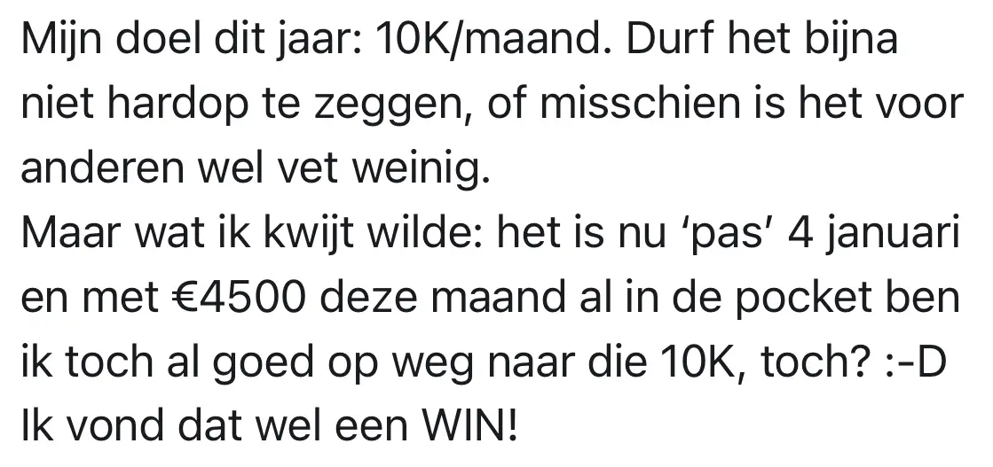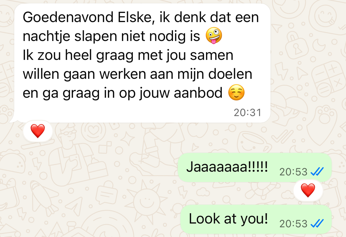 "Elske heeft mij geholpen om mijn eerste 10K maand te draaien. Haar aanpak is anders dan alles wat ik eerder heb geprobeerd. Het draait niet om harder werken, maar om slimmer zijn en jezelf echt neerzetten."
